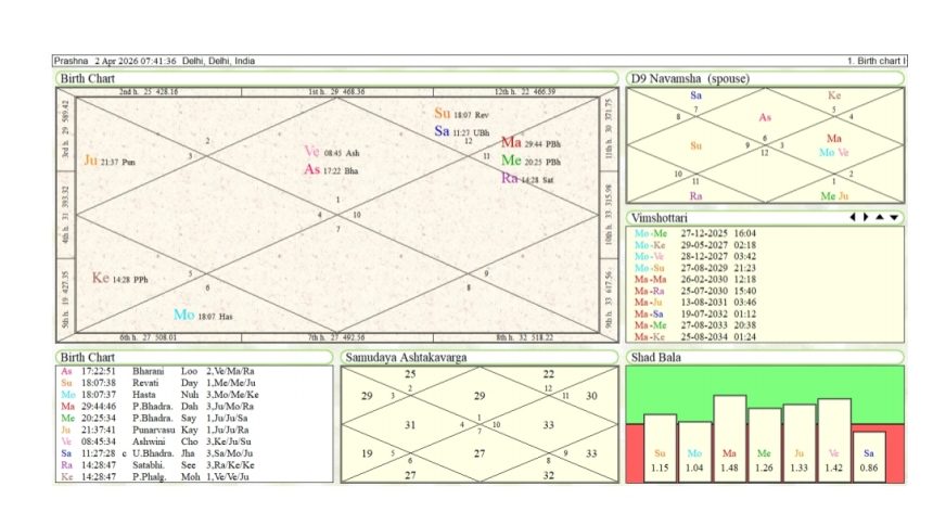 चैत्र शुक्ल पूर्णिमा 2 अप्रैल 2026 को हो रही है, जो कि हनुमान जन्मोत्सव के रूप में मनाया जाता है। यह अत्यधिक शक्तिशाली मानी जाती है – इसकी जो कुंडली बन कर आ रही है वह भारत देश के लिए कैसी रहेगी, आइए देखते हैं —